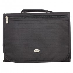 Durable, polyester Bible cases with three sections. One section can be zipped independently, creating practical ways to store notes and study books. Includes a cellphone pouch, two pen loops, four credit card slots and a small zipped mesh inner pocket. Free notepad and pen/marker. Fit most standard size bibles up to 6 1/8" x 8 7/8" x 1 1/2"