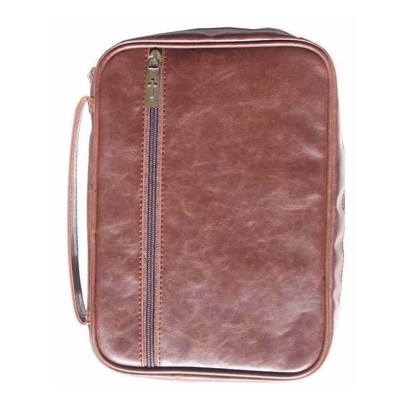 Distressed Leather look PU Bible cover with zipper closing front pocket