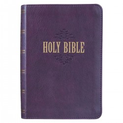 This King James Version Large Print Compact Bible combines easy in-hand portability with easy to read text. The handsome purple cover is embellished with a debossed filigree design. The tile is skillfully debossed and gold foiled. The same design elements are repeated on the spine of the Bible. The cover is constructed of quality man-made material with the look and feel of real leather (trade name LuxLeather). Gold gilt-edged pages enhance the beauty of the design. The Large Print Compact Bible text is comparable in size to the text in a standard size Bible. The nomenclature is used in Bible publishing to differentiate between typical Compact or Pocket Bible text size (7pt) and Large Print Compact Bible text size (8-9pt). Inside, you'll find a double-column format, words of Christ printed in red ink, concordance, a helpful Scripture verse finder by topic, a one-year Bible reading plan and 8 full-cover maps. Size: 4 5/8" (W) x 6 1/2" (H) x 1 3/8" (D) Text Size 8.5pt 1533 Gold Gilt-Edged Pages Faux Leather Flexcover Bound Lay-Flat Spine Attached Ribbon Page Marker Words of Christ in Red Ink Concordance Unique Scripture Verse Finder One-Year Bible Reading 8 Full-Color Maps Presentation Page
