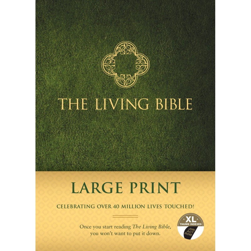 Celebrating over 40 years and over 40 million lives touched, Tyndale is releasing an indexed edition of the Large Print hardcover The Living Bible. Features include a Bible reading plan, four-color maps, topical concordance, presentation page, and large-print thumb tab indexing. The uncluttered, two-column format and large text make for easy reading.The Living Bible is a paraphrase of the Old and New Testaments. Its purpose is to say as exactly as possible what the writers of the Scriptures meant, and to say it simply, expanding where necessary for a clear understanding by the modern reader.