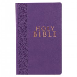 Our Economy Thinline Purple Flexcover Edition of the King James Bible is constructed with quality man-made material with the look and feel of real leather (trade name LuxLeather). The front cover has a debossed design with gold foil titling on the front and spine. Inside, you'll find a double-column format, a helpful Scripture verse finder by topic and a one-year Bible reading plan. 738 Pages. Text Size 8pt 5 1/4 x 8 1/4 x 7/8 Inch Faux Leather Flexcover Bound Lay-Flat Spine Unique Scripture Verse Finder One-Year Bible Reading Plan