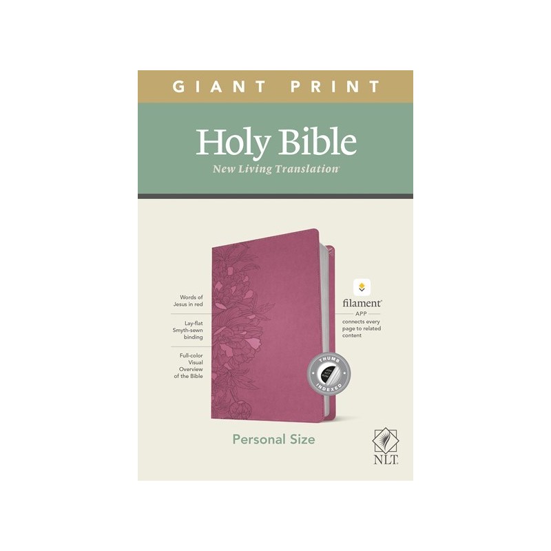 Bible Reading: IlluminatedThe new Tyndale NLT Personal Size Giant Print Bible, Filament-Enabled Edition, has readable text and an attractive layout in an easy-to-carry size. And while it has the same low price as basic, text-only Bibles, the NLT Personal Size Giant Print Bible offers much more. It not only features a bold new design and the trusted and much-loved New Living Translation (NLT) but also includes the groundbreaking Filament Bible app, which turns this Bible into a powerful study and devotional experience, offering more to expand your mind and touch your heart than you can possibly hold in your handat no additional cost, no additional bulk or weight. Read this Bible on its own, or dig deeper with the Filament Bible app. Use your mobile phone or tablet to connect every page to a vast array of related content, including:25,000 study notes350+ videos40+ maps and infographics400+ profiles and articles1,500+ devotionalsLibrary of worship musicSpecial features include:New, easy-to-read page designsFilament content linked to every page!Readable large printHandy, thin sizeWords of Jesus in redQuality lay-flat Smyth-sewn bindingTyndale Verse FinderPresentation pageRibbon markerGilded page edges