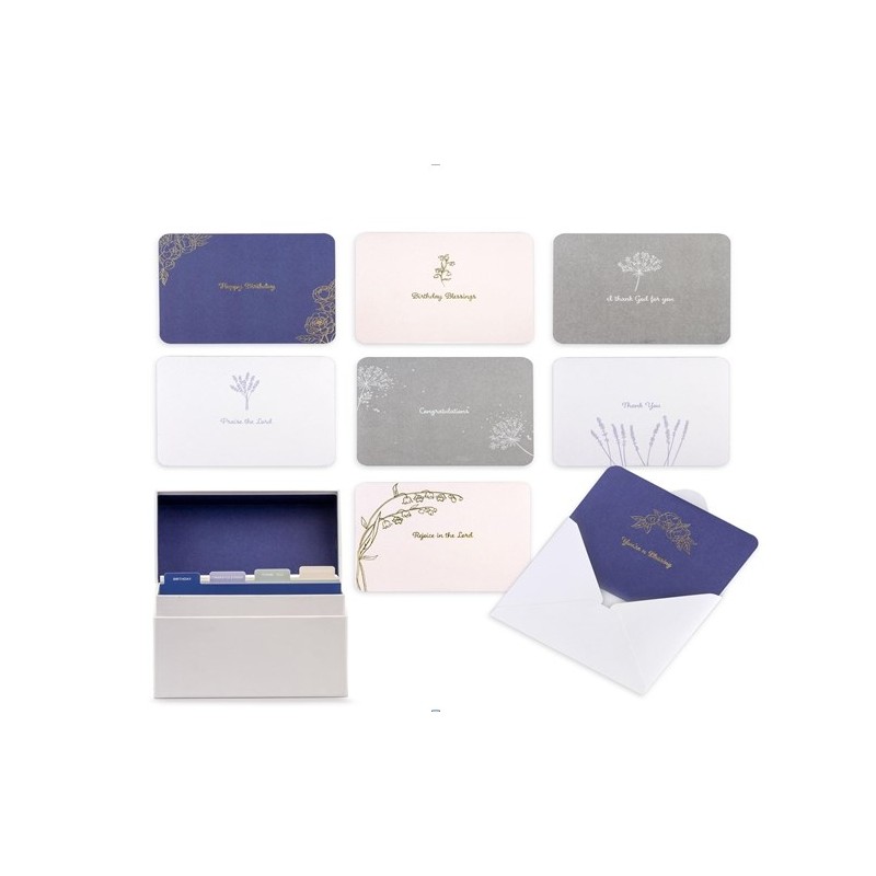 In this boxed-set includes 20 assorted cards with envelopes for a variety of occasions. Each card includes Scripture to encourage the ones you love!Each 4.25 x 5.5 card is embellished with a simple and delicate floral arrangement. The greeting card set includes:- 6 Birthday- 6 Encouragement- 4 Thank You- 4 Congratulations
