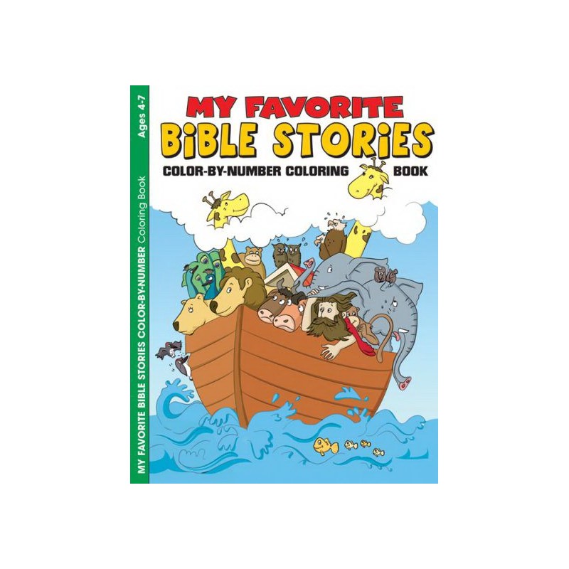 his My Favorite Bible Stories color-by-number coloring book features pictures from 15 best-loved Bible stories. Each picture has numbered sections for the children to color that helps them learn both numbers and color words. The illustrations are designed for children (ages 4-7) to enjoy as an adult helps children read the story.