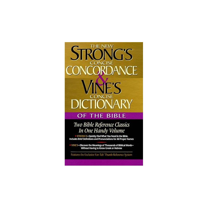 A multi-purpose Bible study resource tool. All the essentials you need to study the biblical text without having to know Hebrew or Greek. Provides definition, explanation, and concordance entries. Dr. James Strong, formerly professor of exegetical theology at Drew Theological Seminary, spent more than thirty-five years preparing his landmark concordance. First published in 1890 with the help of more than one hundred colleagues, Strong's remains the definitive concordance compiled on the King James Version of the Bible. W. E. Vine, M.A. (1873-1949) was a classical scholar, skilled expositor, and a trustworthy theologian. Recognized internationally for his outstanding Greek scholarship, his Expository Dictionary of New Testament Words, first published in 1939, represents the fruit of his lifetime labors and is an unsurpassed classic in its field.