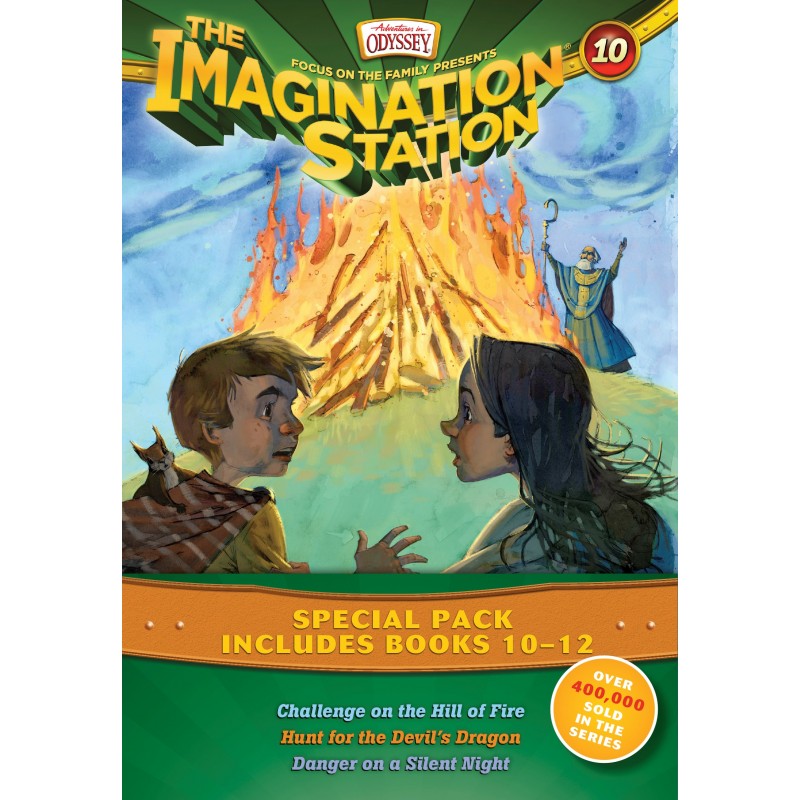 Over 1 million sold in series!When they step into the Imagination Station, kids experience an unforgettable journey filled with action-packed adventure to inspire their imaginations. With each book, theyre whisked away with cousins Patrick and Beth to embark on a new journey around the world and back in time.This 3-pack of books 10-12 includes the following: Challenge on the Hill of Fire, Hunt for the Devils Dragon, and Danger on a Silent Night.