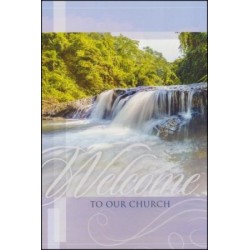 Attractive waterfall welcome folder and information packet for church guests. Two pocket folder with business card slit, 6" x 9". Pack of 12.