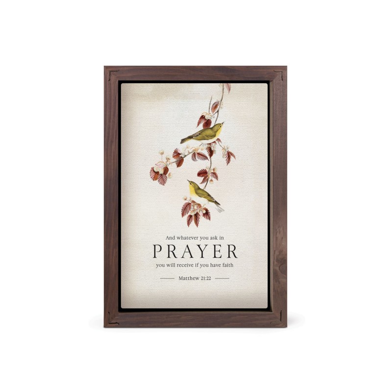Framed Linen Shelf Sitter-Birds/Prayer-Matthew 21: