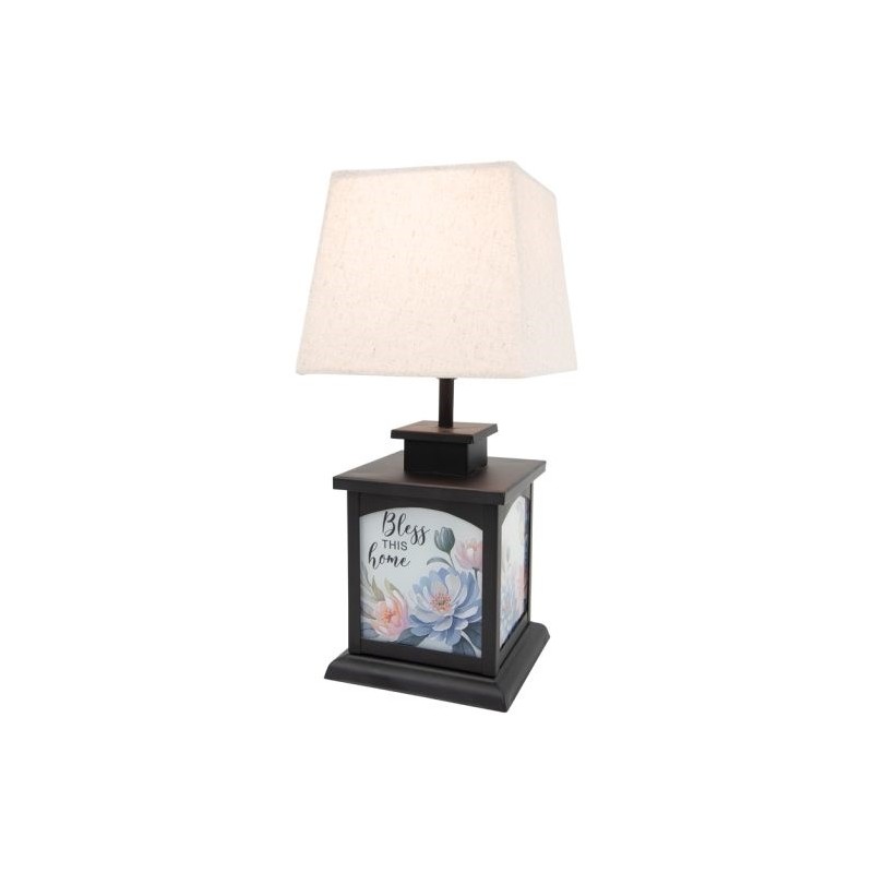Lantern Lamp w/Fabric Shade-Bless This Home (10.25
