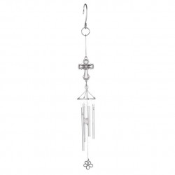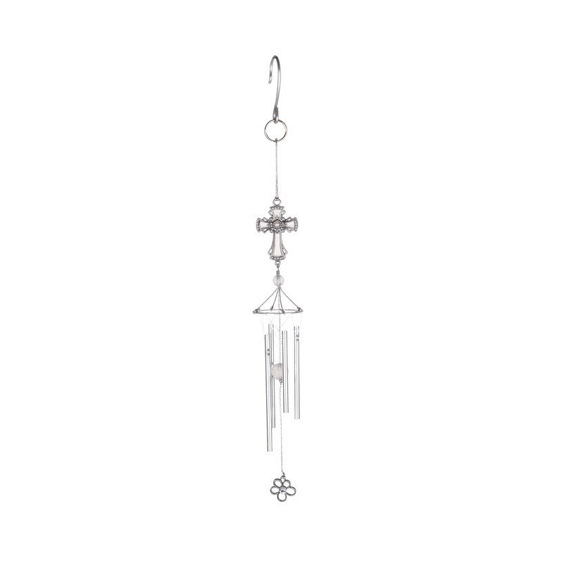 This crystal chime has finely detailed castings with enamel inlay. Faux crystal striker with a metal wire flower and gem sail.