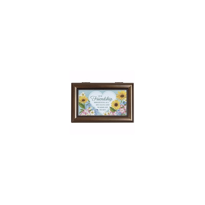 Music Box is velvet lined, includes a hand crank music mechanism and plays a popular song! All sentiment cards can be replaced with a personal photograph. Maximize your sales by purchasing one of the Music Box Displays item 17480 or 17479. Plays "Everything Is Beautiful".