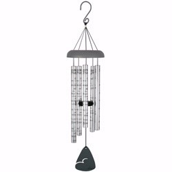 Beloved words from the Serenity Prayer are engraved on the tubes of our 30' Sonnet windchime, with a melodious sound for home or garden decor. Each 7/8' tube is crafted of heavy gauge aluminum, with a unique adjustable striker which allows you to adjust the tone to your liking. Five tube chimes in silver finish with brown accents.