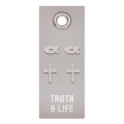 Earrings-Truth & Life/2 Sets Of Studs On Leather T