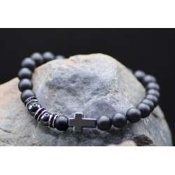 Bracelet-Eden Merry-Black Bead/Hematite-Cross