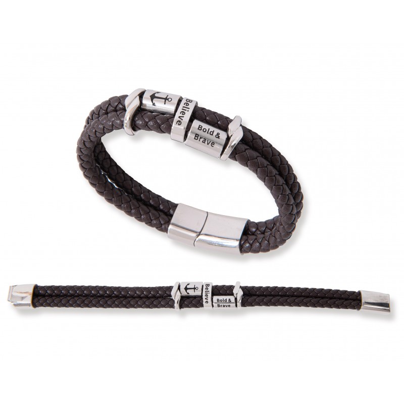 Stay grounded and inspired with the Bold & Brave, crafted with a durable braided leather band and sleek stainless steel accents. Featuring engraved charms with the words "Believe" and "Bold & Brave" alongside a classic anchor design, this bracelet is a powerful symbol of faith, courage, and resilience. With an 8.5 length and a secure magnetic clasp, it offers comfort and style for everyday wear.