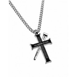 NECKLACE-BLK ESTABLISHED CROSS/NAIL-ARMOR OF GOD (MENS) (24")