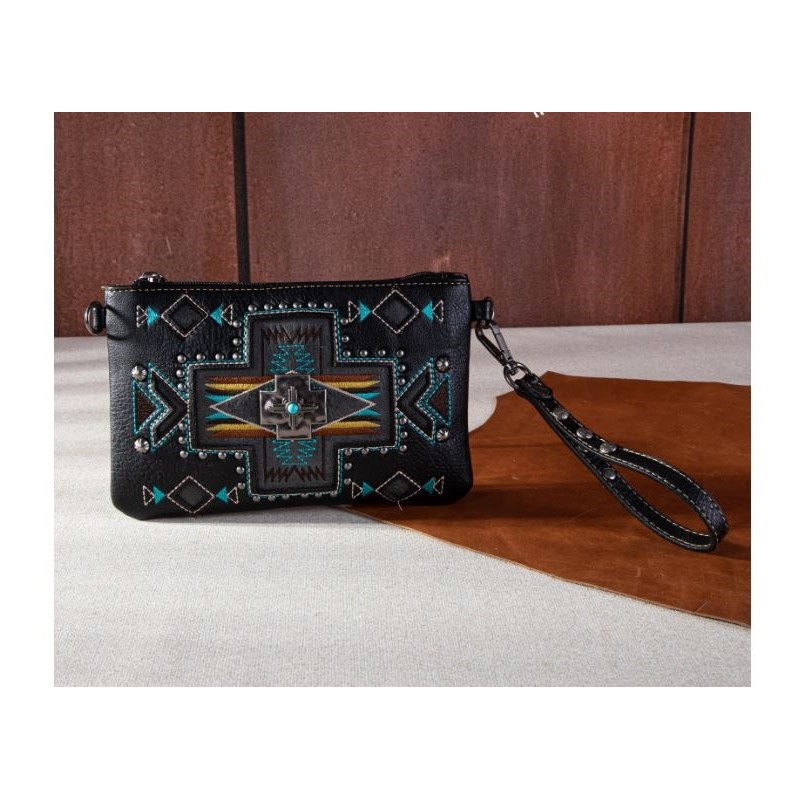 Wristlet/Crossbody Bag-Aztec Cross-Black