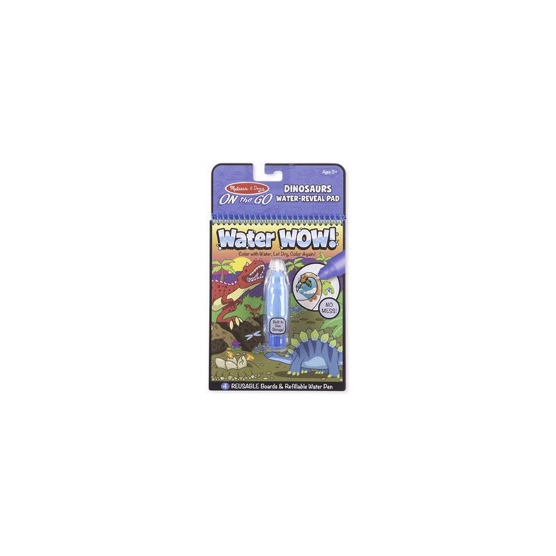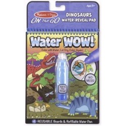 No-mess painting for kids! This exciting paint-with-water coloring book includes four reusable pages and a refillable water pen. Simply use the pen to color in each scenedetails and vibrant color appear with every stroke! Then let the page dry to erase the pictures and color it in again and again. This dinosaur-themed book includes four scenes to color, and a search-and-find activity for each scene. The chunky-sized water pen is easy for kids to hold and stores neatly right in the front cover, making this Water WOW! an ideal travel activity book and travel toy for kids!