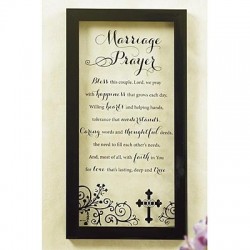 Marriage Prayer From our "Faith to See You Through" collection. Print" features black vinyl lettering and designs and is displayed in a contemporary black frame. Ready to hang. Plastic wrapped with protective corners; boxed. Measures 8 7/8" x 16 3/4".