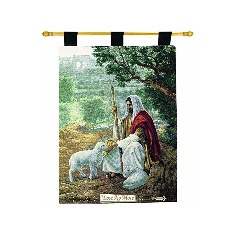 Woven wall art with included hanging rod Hanging measures 26 x 36-Inches A shepherd comforts his found lamb in this Christian inspired image Image created by American artist Greg Olsen, Made in the USA Search Manual Woodworkers and Weavers for complementary throws, rugs, pillows and more