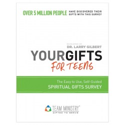 Once you have accepted God's greatest gift of Jesus Christ, unwrap the spiritual gifts He has given so you can grow and become the person you were meant to be! Your Gifts will guide you through a 20-minute survey to help you discover your gifts and how you can use them to fulfill God's plan for your life. More than 5 million people around the world have discovered their spiritual gifts through taking the Your Gifts survey, enabling and quipping them to serve with effectiveness and fulfillment at home, work, and in their churches. What better time than now to understand how God desires to release you with passion and purpose as you begin to put these gifts into practice! YOUR GIFTS FOR TEENS is based on the best-selling spiritual gifts survey for adults. It has been fully revised and updated to appeal to today's tweens and teens (middle and high school ages). Administered in 20 minutes, it is a fun and valuable tool for helping 12- to 18-year-olds discover, understand, and use the gifts God has given to them to reach their generation for Christ.YOUR GIFTS covers nine ?team? gifts used in daily life and ministry: Administration ? organizing, administering, promoting, leading Evangelism ? passionately leading others to the saving knowledge of Christ Exhortation ? motivating others to action, application and purpose Giving ? releasing material resources to further the work of the Church Mercy-Showing ? Identifying with and comforting those in need Shepherding ? overseeing, training, feeding, coaching/leading Prophecy ? boldly and fearlessly proclaiming God's truth Serving ? providing practical help both physically and spiritually Teaching ? making clear the truth of God's Word with simplicity & accuracyIncludes questionnaire; two-part, self-scoring answer sheet; detailed gifts summaries and instructions.? 16-page paperback.