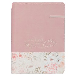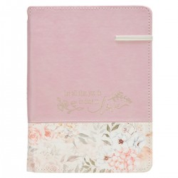 Stop losing your pen by you slipping it into the cover of the Done in Love Pink Floral Classic Journal with Elastic Closure and Pen Holder. This journal is for the serious journaler in your life who likes to keep all her journaling necessities neatly in one place.
